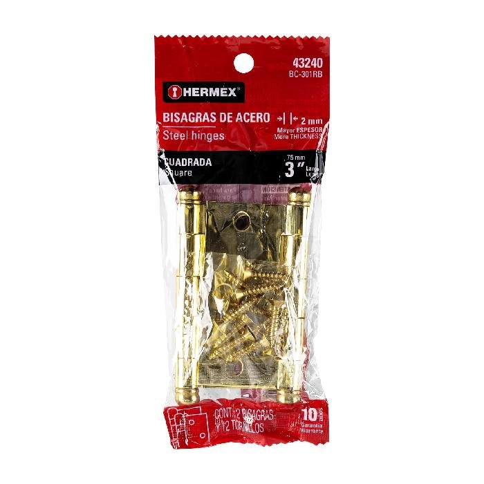 Bolsa c/2 bisagras cuadradas de 3′, latonado, cabeza redonda 43240