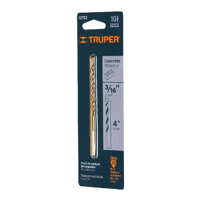 Broca para concreto de 3/16 x 4′ en blíster, Truper 12752