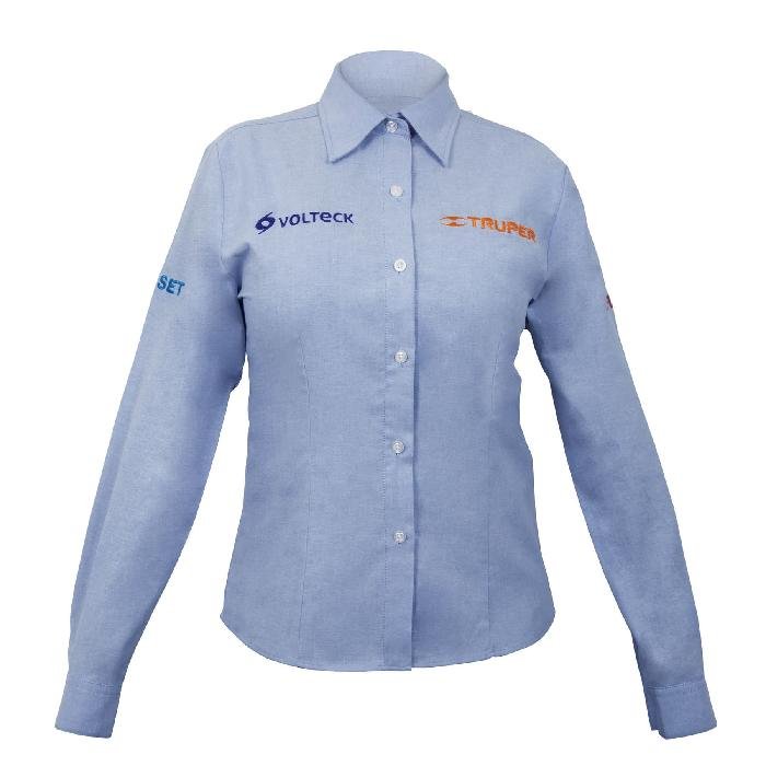 Camisa azul para dama, manga larga, talla EEG, Truper 63105