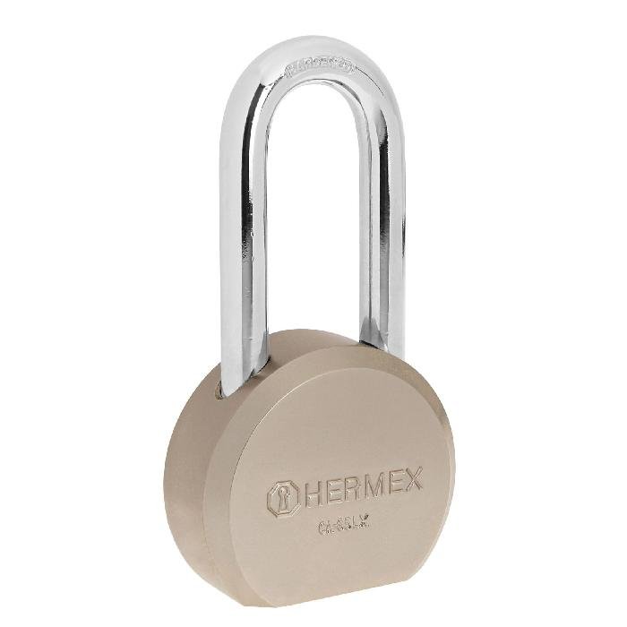 Candado redondo, 65mm, gancho largo, llave tetra, blister 43339