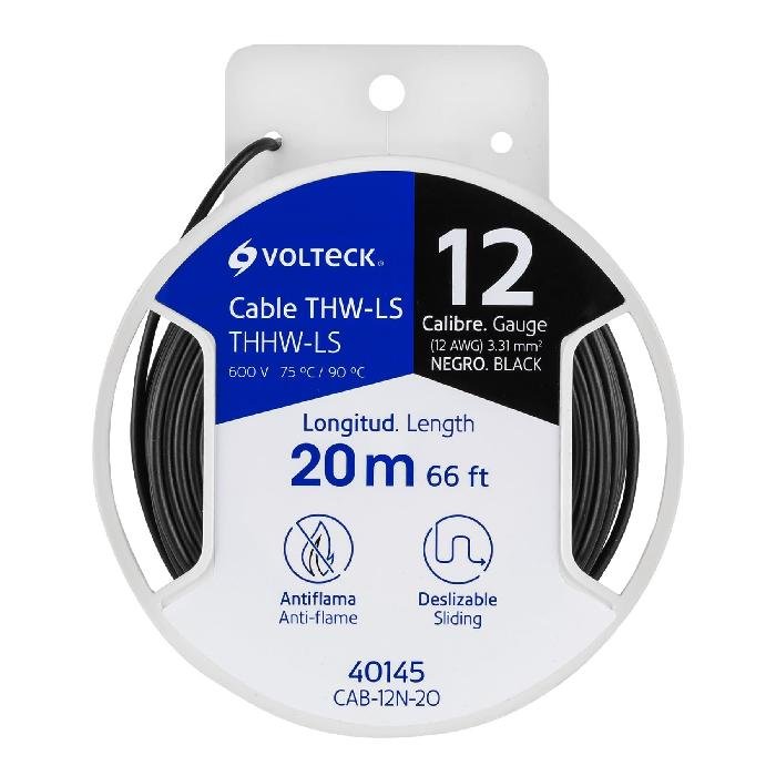 Carrete con 20 m de cable THHW-LS 12 AWG negro, Volteck