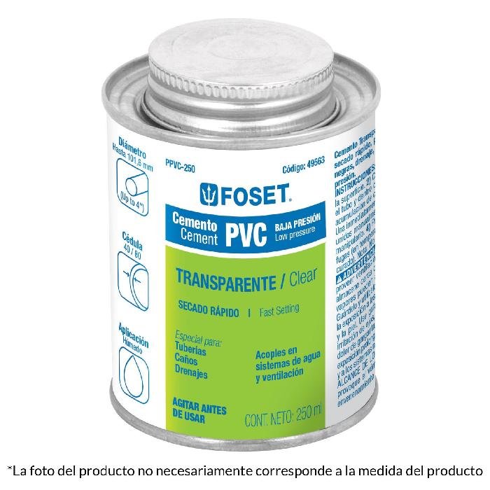 Cemento para PVC en bote de 250 ml, baja presión, Foset 49563