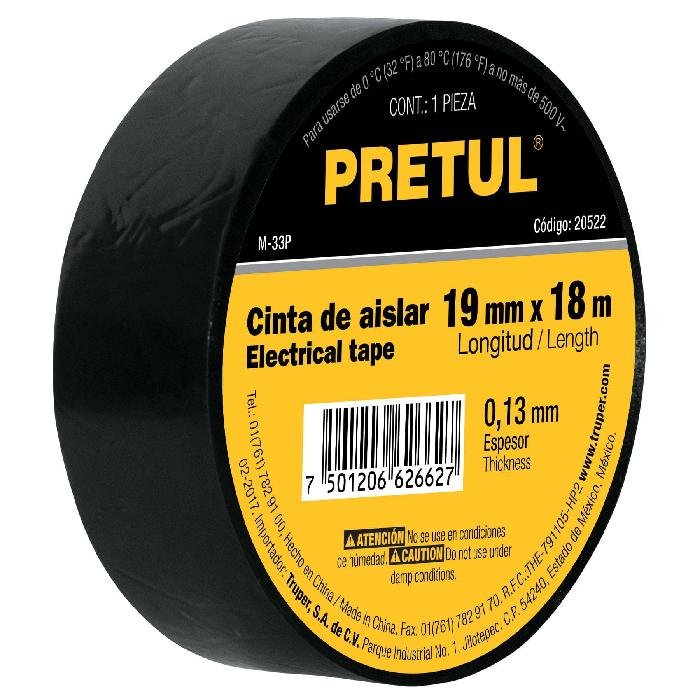 Cinta de aislar de 18 m x 19 mm, negra, Pretul 20522