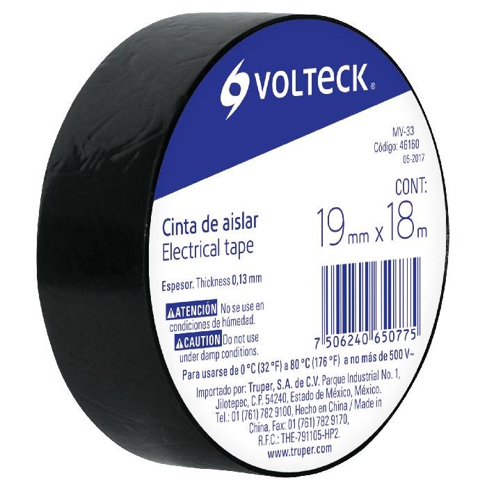 Cinta de aislar de 18 m x 19 mm, negra, Volteck 46160