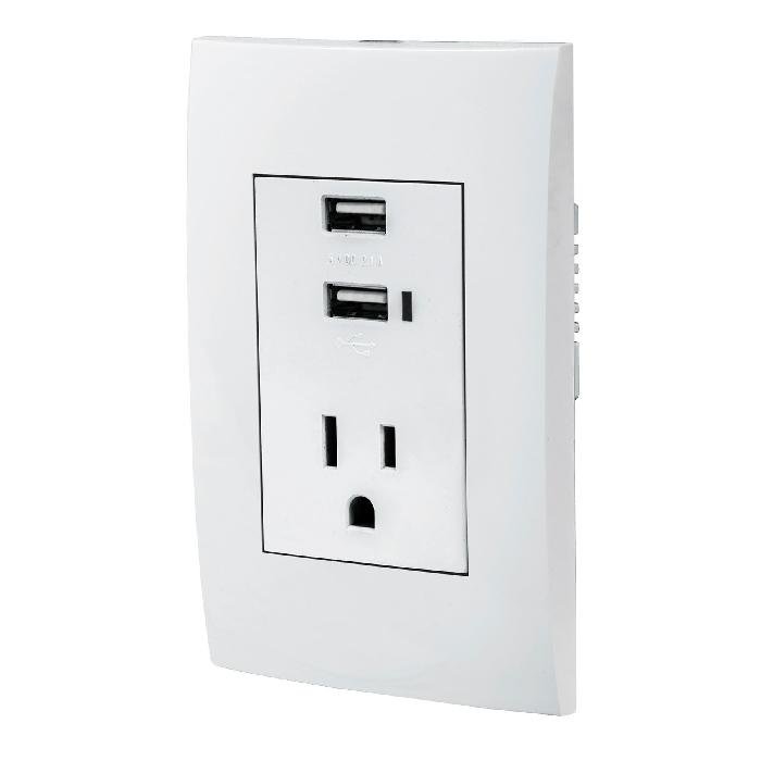 Contacto 2polos + tierra con 2 puertos USB, Oslo, blanco 48313