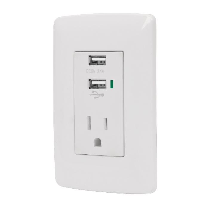 Contacto aterrizado + 2 puertos USB, blanco, línea Italiana 48065