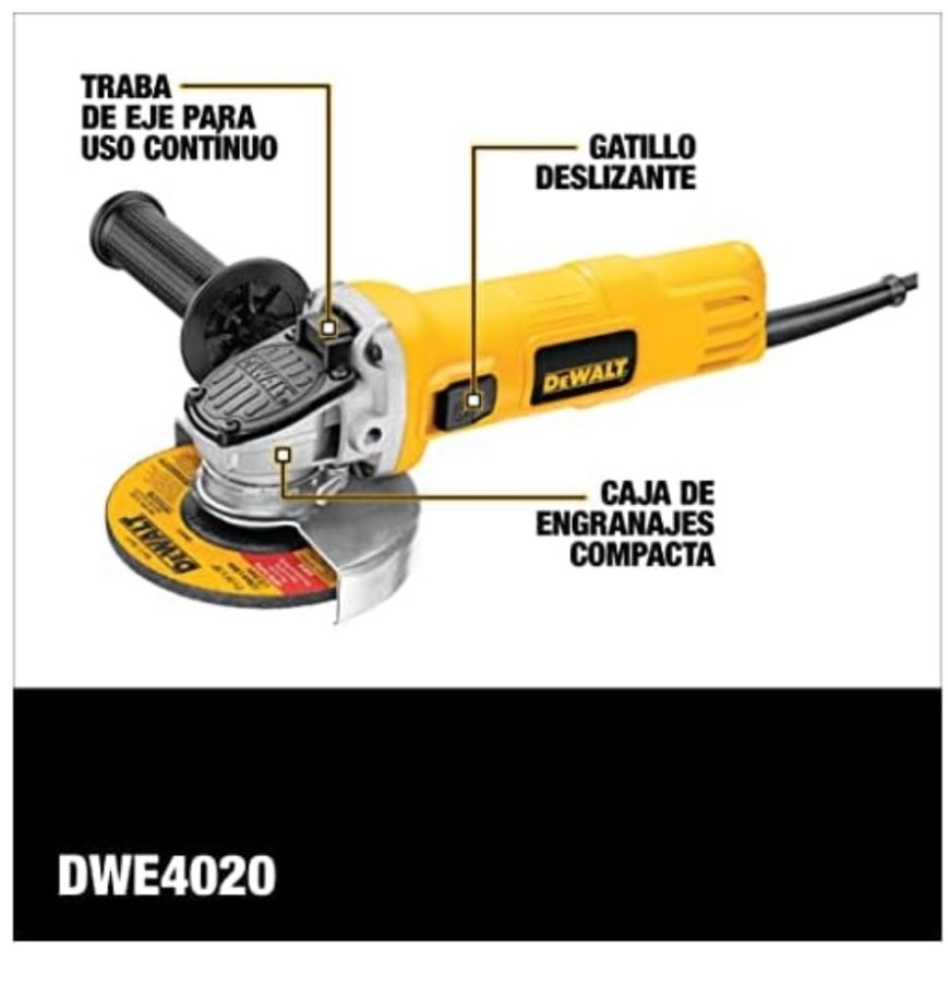 DEWALT Mini Esmeriladora Angular 4 1/2 Pulgadas (115mm) 800W DWE4020