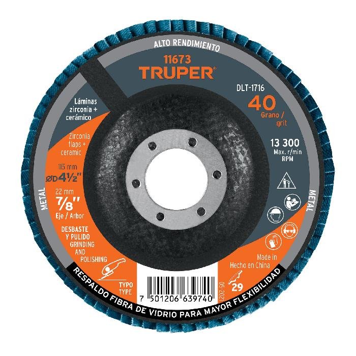 Sé el primero en valorar “Disco laminado 4-1/2′, grano 40 centro 7/8′, fibra, TRUPER” Cancelar respuesta