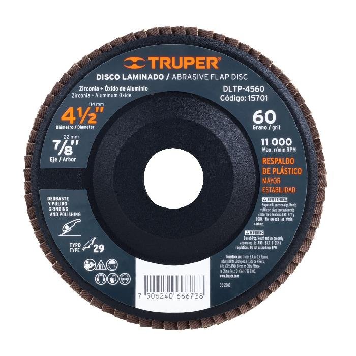 Sé el primero en valorar “Disco laminado 4-1/2′ grano 60 centro 7/8′, plástico, TRUPER”