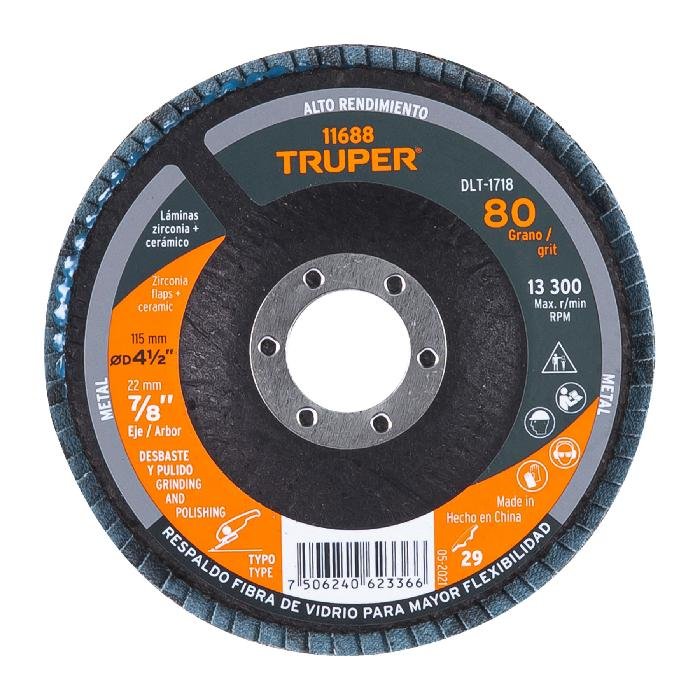 Disco laminado 4-1/2′, grano 80 centro 7/8′, fibra, TRUPER