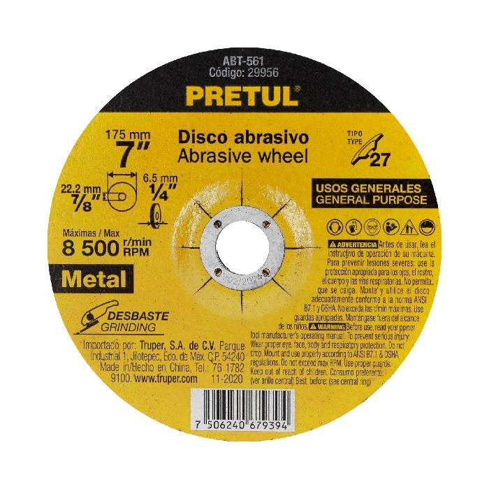 Disco Tipo 27 de 7′ x 6.2 mm desbaste de metal, Pretul 29956