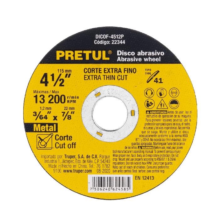Disco Tipo 41 de 4-1/2′ x 1.2 mm corte fino de metal, Pretul 22344