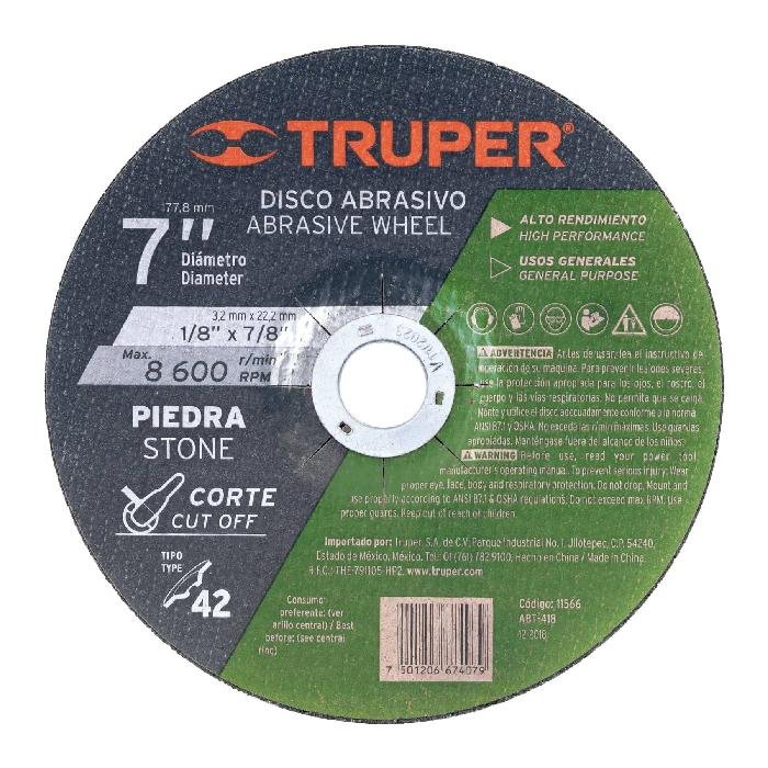 Disco Tipo 42 de 7′ x 3.2 mm para corte de piedra, Truper 11566