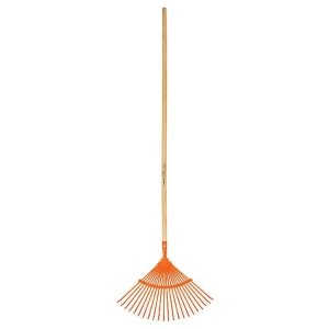 Escoba plástica p/jardín, flex. 26 dientes, mango acero 54′ 19881