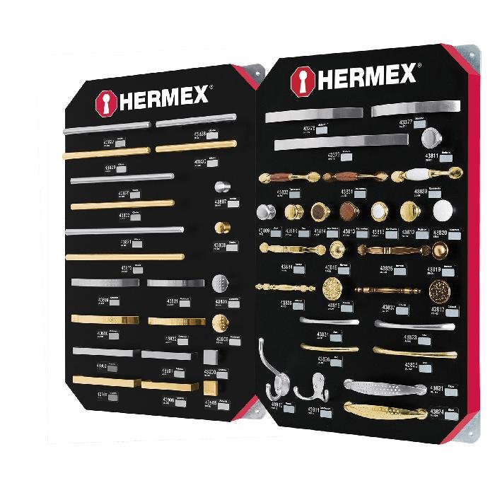 Exhibidor con jaladeras y perillas, 2 tableros, Hermex 53002