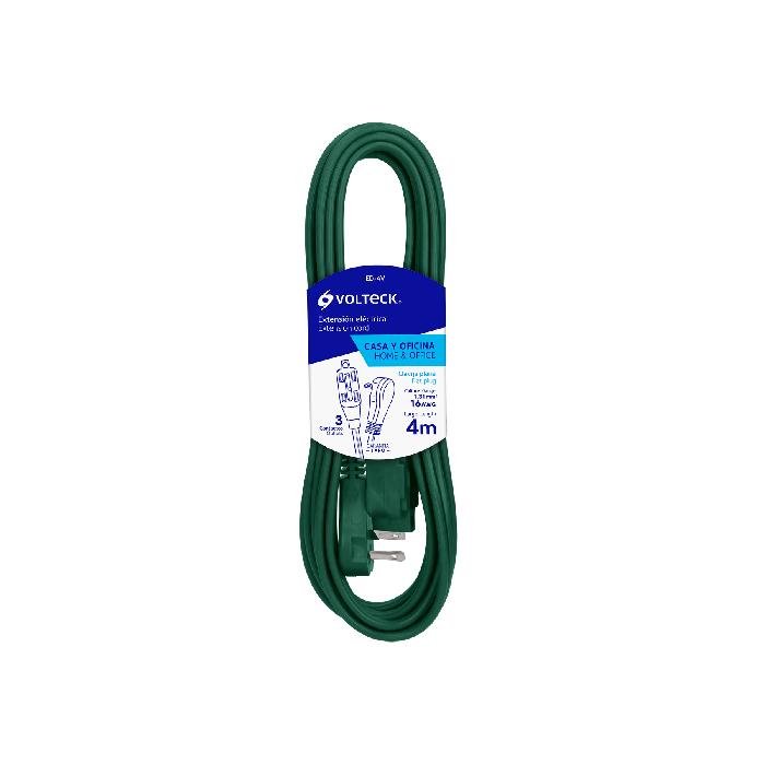 Extensión eléctrica doméstica 4 m verde con clavija plana 48014