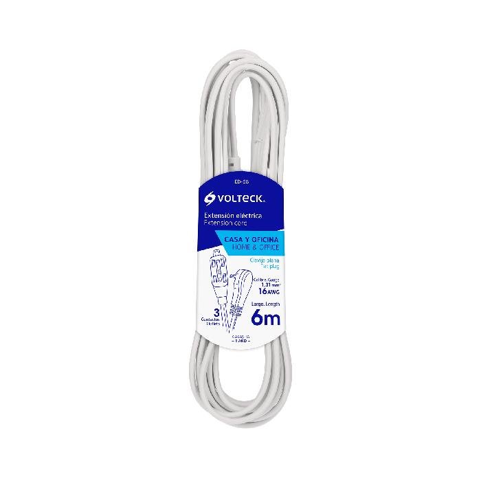 Extensión eléctrica doméstica 6 m blanca con clavija plana 48024