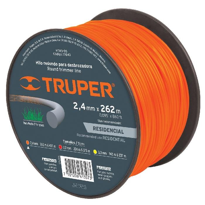 Hilo redondo, para desbrozadora, 2.4mm x 262m,carrete,TRUPER