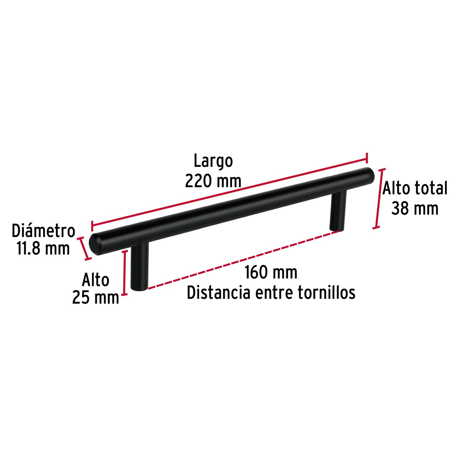 Jaladera de acero, 160mm, línea Cilindro, negro, HERMEX