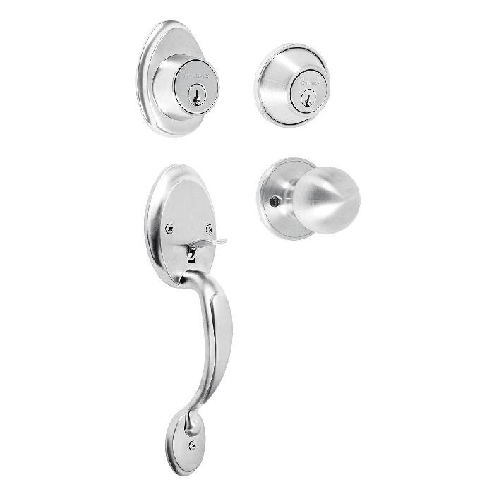 Jaladera, perilla y cerrojo llave, cromo mate, Hermex Basic 23674
