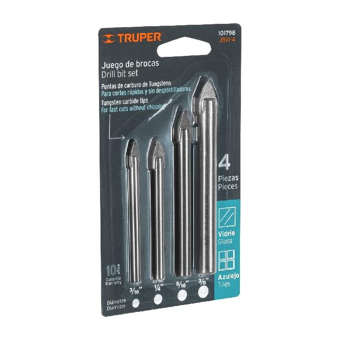 Juego de 4 brocas para vidrio y azulejo, Truper 101798