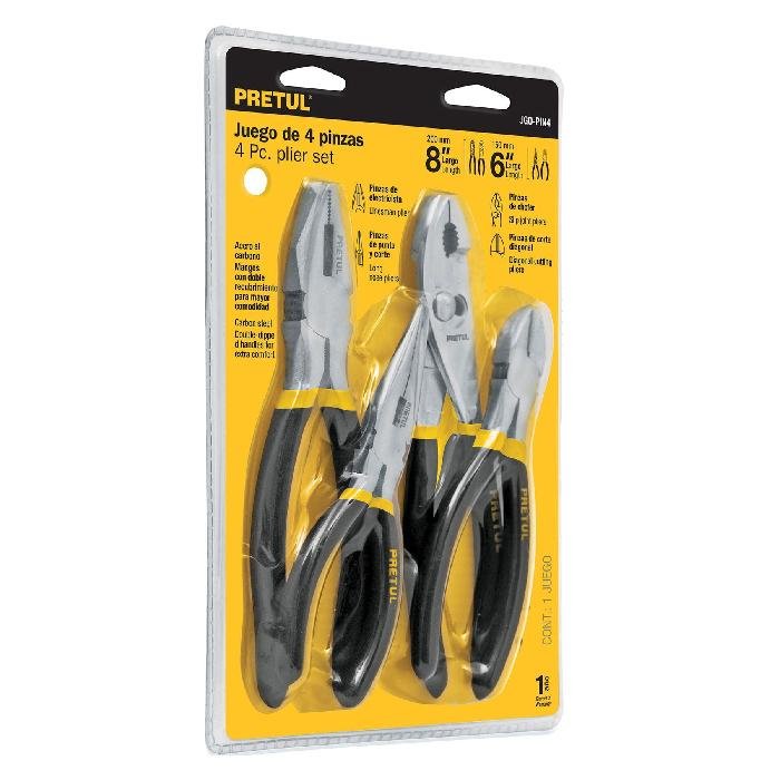 Juego de 4 pinzas mango de vinil, Pretul 22970
