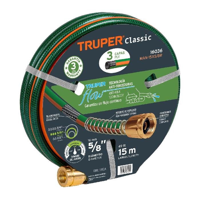 Manguera 5/8′ reforzada 3 capas 15 m conexiones de metal