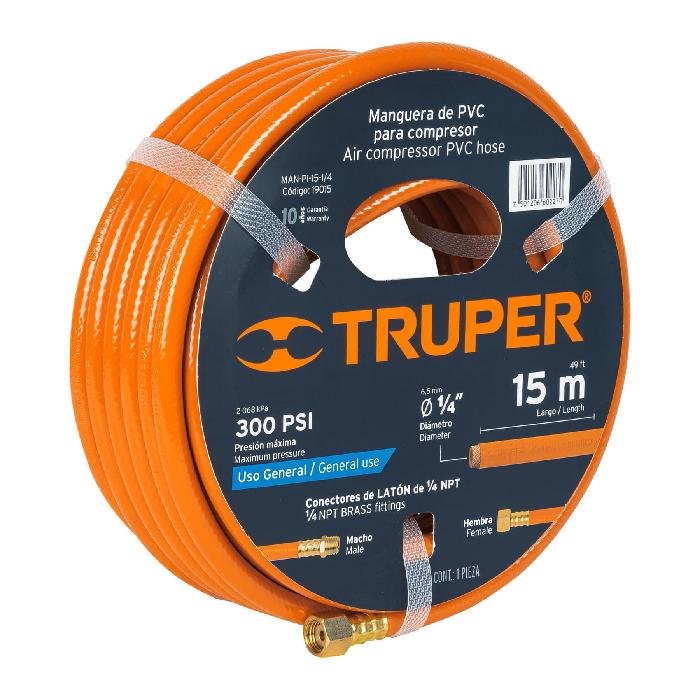 Manguera de PVC para compresor, 15 m x 1/4′, Truper 19015