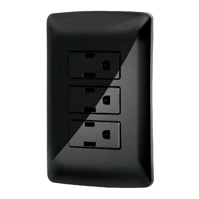 Placa armada 3 contactos aterrizados, negro, línea Italiana 47594