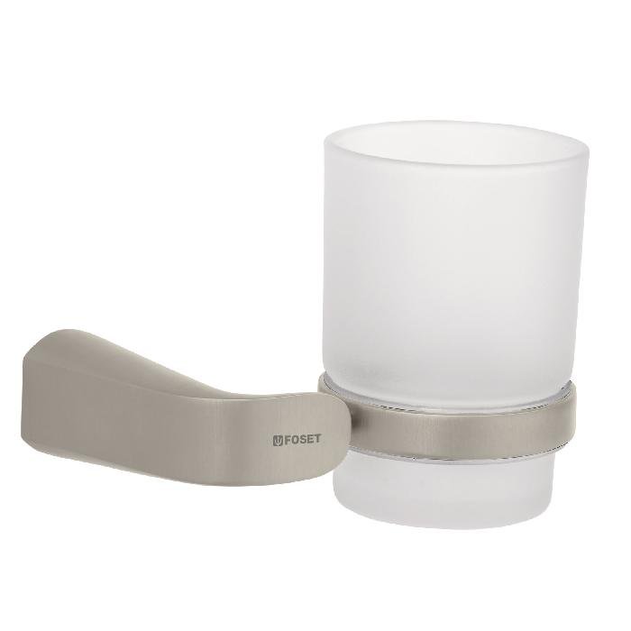 Portavaso cepillero satín con vaso de vidrio, Foset Riviera 45220